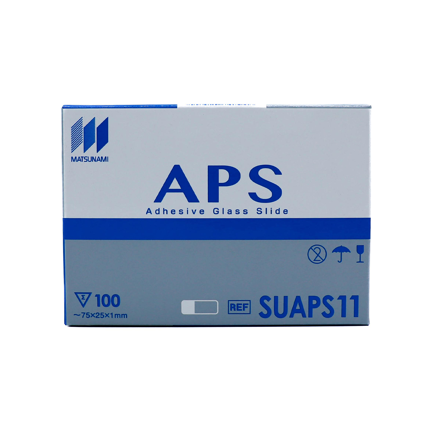 high-adhesion performance in H&E and IHC staining workflows. Its hybrid surface coating—positively charged and amphiphilic—promotes rapid tissue adherence and uniform reagent flow, enabling smooth transfer from the water bath and consistent staining quality. Ideal for pathology and cytology labs, the APS Slide features optically clear, low-fluorescence glass made in Japan and is ISO 13485 Certified for clinical use.